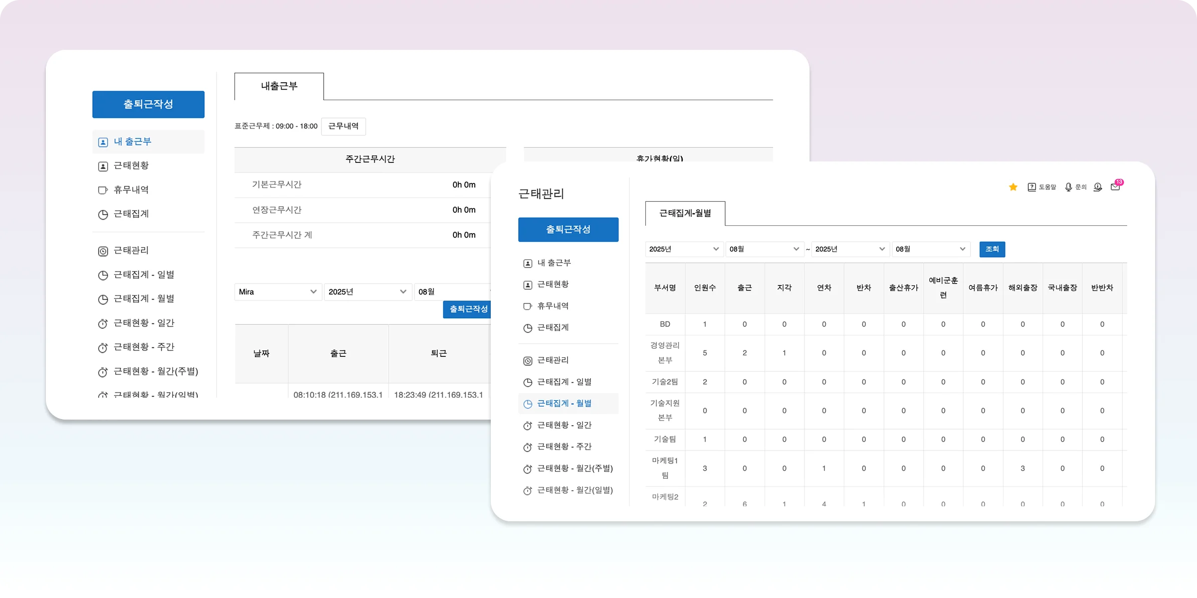 직원의 근태를 수작업으로 집계하면 오류는 늘고, 신뢰는 떨어집니다.