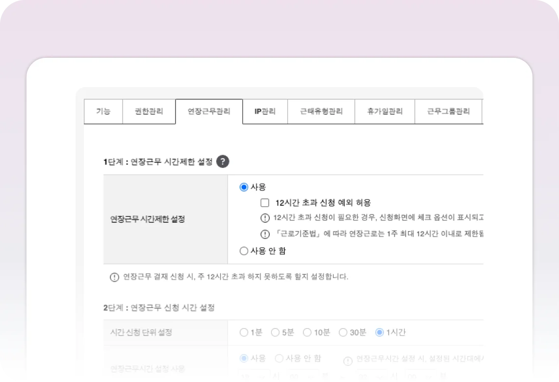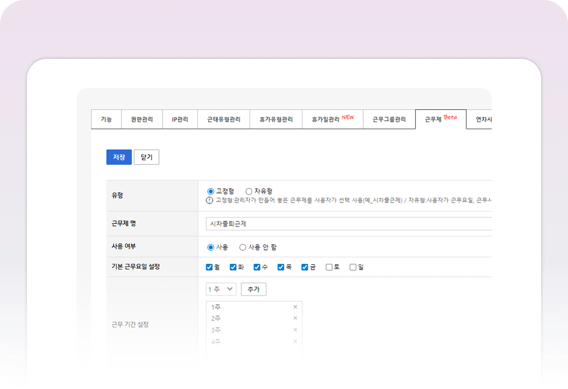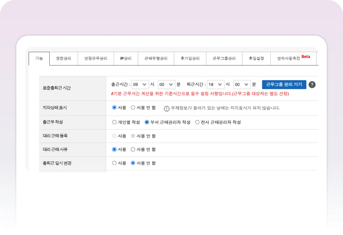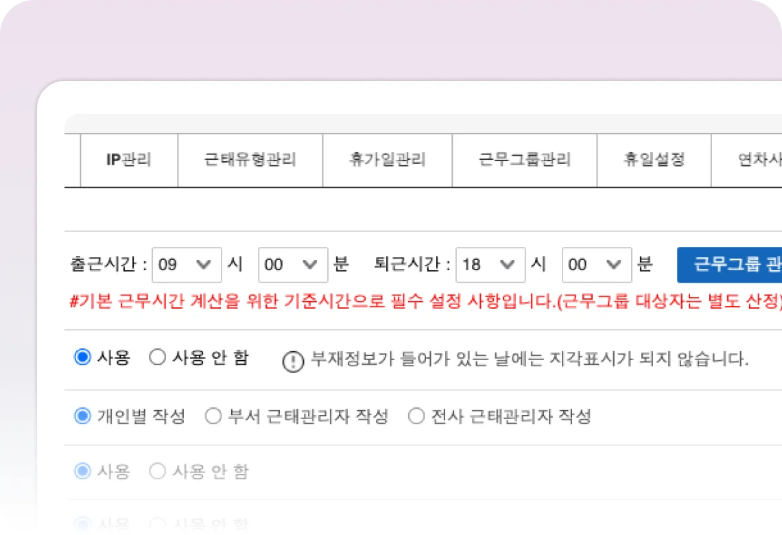 근로기준법을 준수하면서도, 조직의 유연한 근무 운영이 가능합니다.