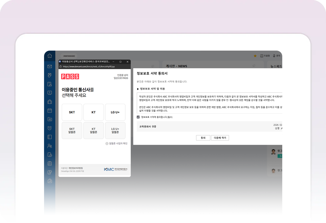 본인인증으로 중요한 규정과 동의 절차를 전자기록으로 남겨 분쟁의 여지를 줄이고, 신뢰할수 있는 근로환경을 만듭니다.