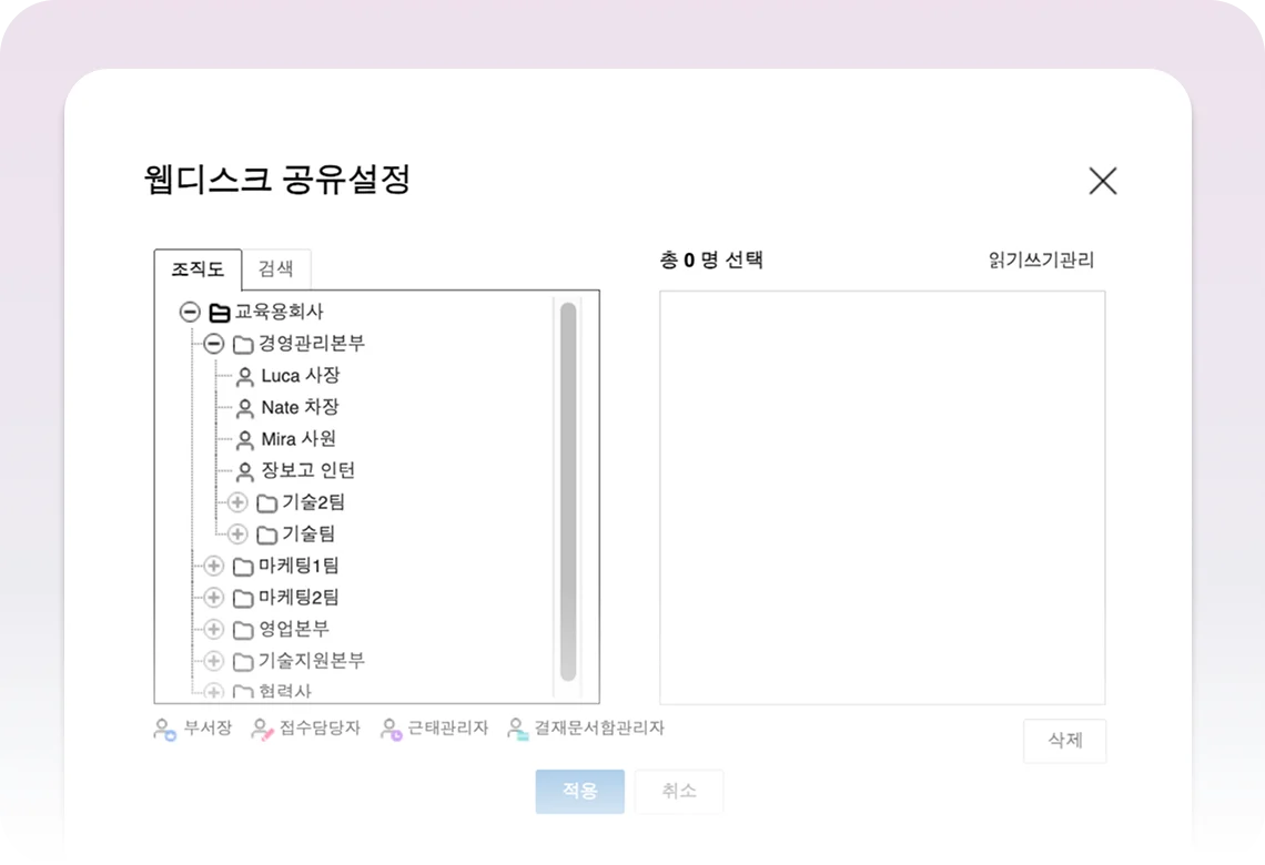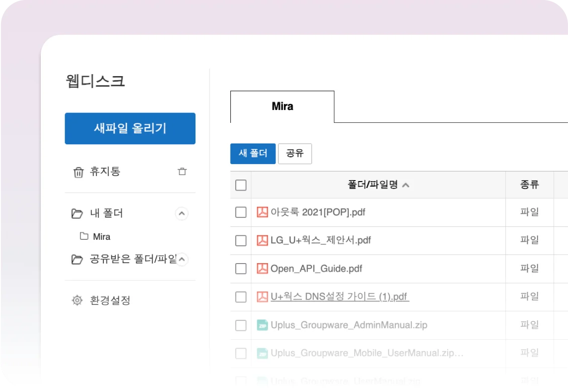 폴더부터 개별 파일까지, 세부 공유 설정으로 필요한 사람에게만 안심 공유하세요.