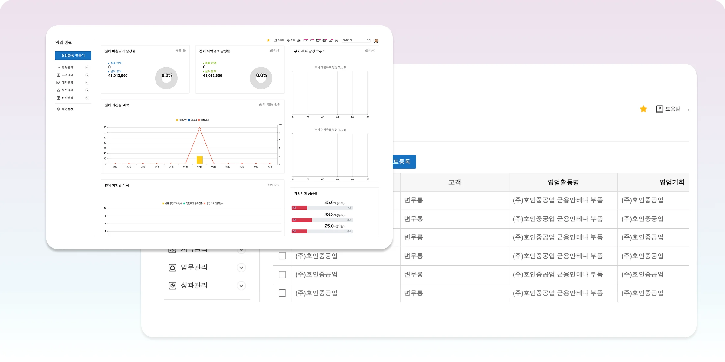 고객사 정보와 거래 히스토리를 체계화하여 영업 단계별 진행 상황 및 성과를 분석해 보세요.