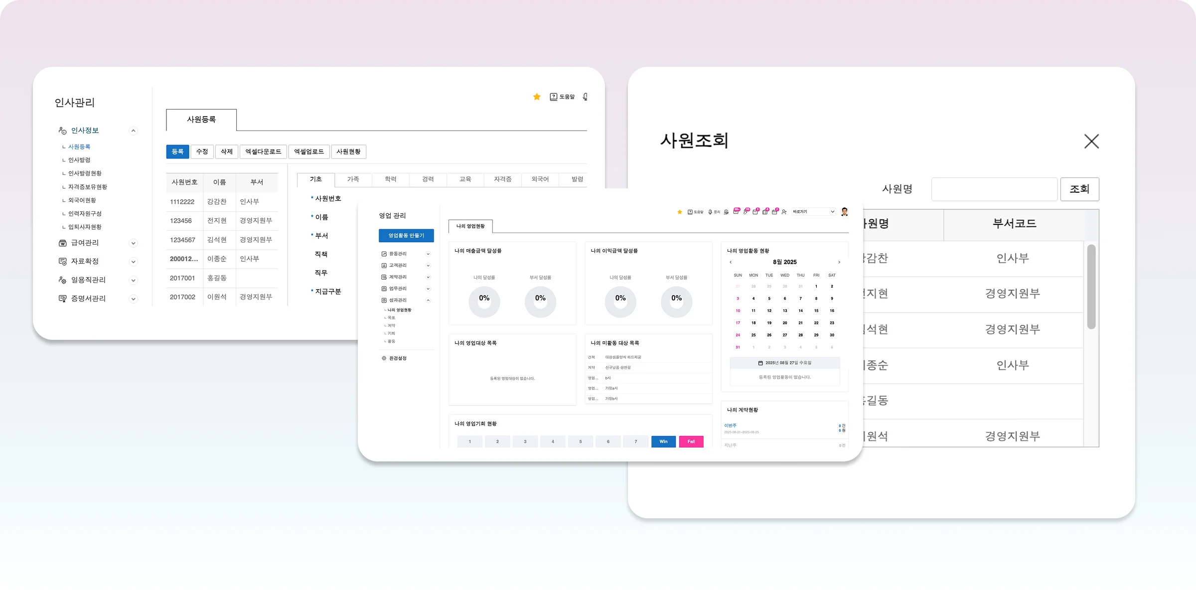 직원 이력과 경력 관리를 자동화하고 퇴사자, 입사자 프로세스를 표준화하여 인재 관리의 체계화와 업무 효율을 동시에 실현합니다.