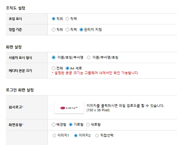 로그인 화면에 회사 로고와 메인 배너를 직접 설정하고, 사내 호칭을 표준화하여