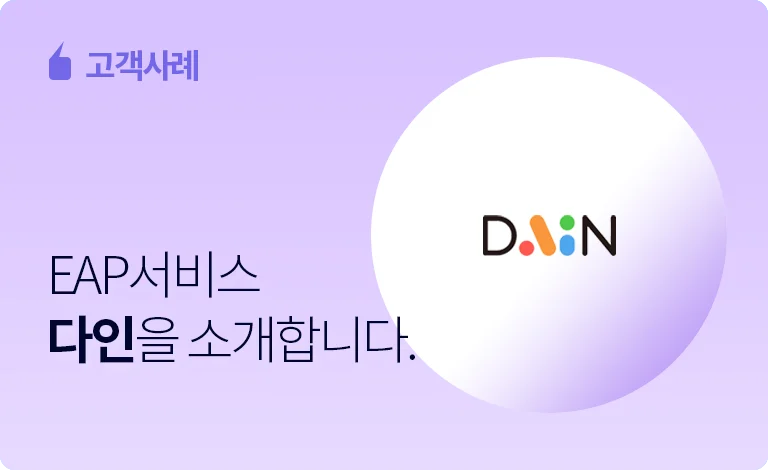 다인은 우리나라 최초로 설립된 EAP(Employee Assistance Program) 전문기업이라고 합니다. 😉