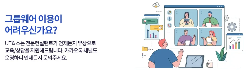 - U+ 웍스 데모를 신청하시고, 팀에 맞는 설정 가이드를 받아보세요.
