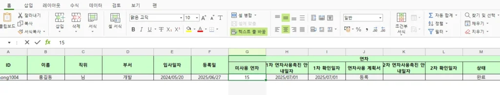 - 데이터 정합: 입사일/잔여일, 사용률 업데이트