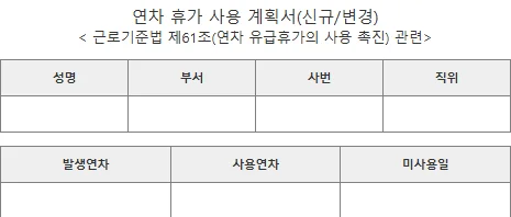 근로기준법 제61조에 따라 미사용 연차에 대한 1차 사용 촉구를 드립니다.