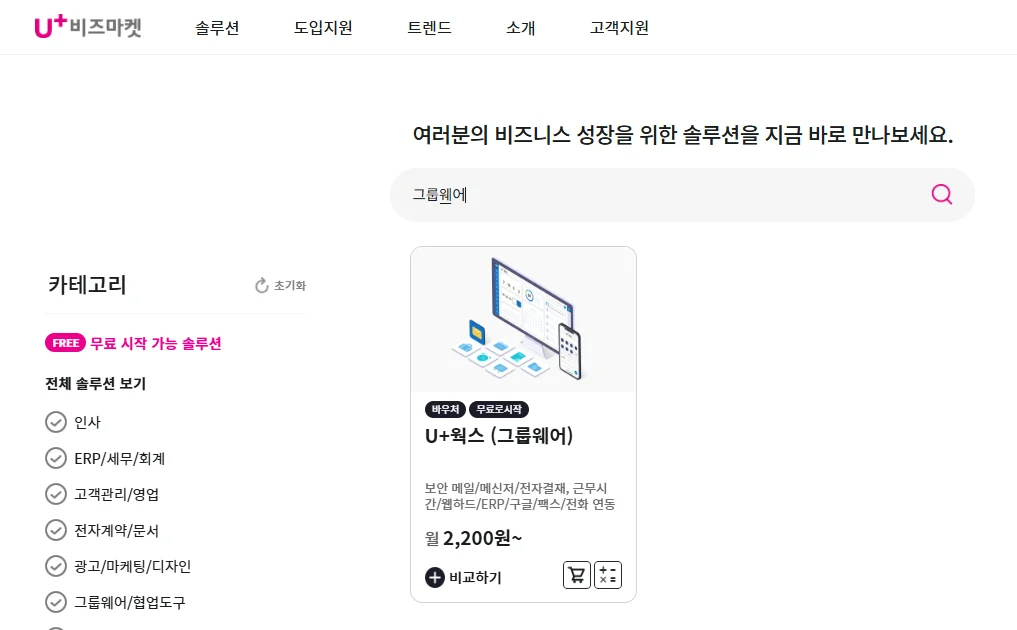 안녕하세요, U+ 웍스 “그룹웨어” 입니다.