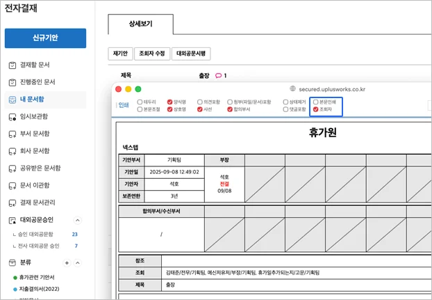 6. 인쇄화면에서 조회자 선택포함 기능