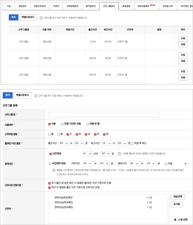 1. 근무그룹 고도화