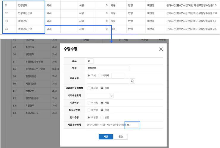 4. 기본 시스템 법정 수당 제공 및 수당률 직접 설정 기능