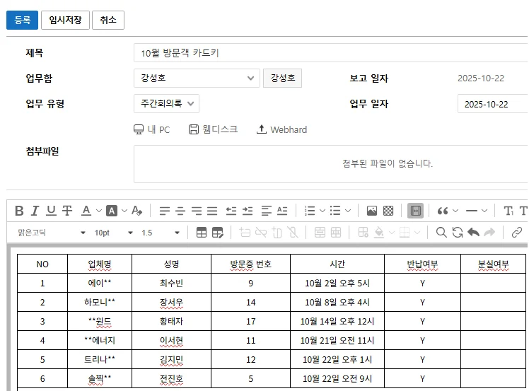 - 방문객 카드키 회수는 업무일지에 기록하고 사진 증빙 첨부 → 분실률 DOWN.