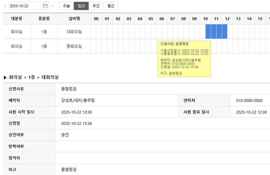 - 대회의실은 자원예약 기준으로 이미 세팅 완료.