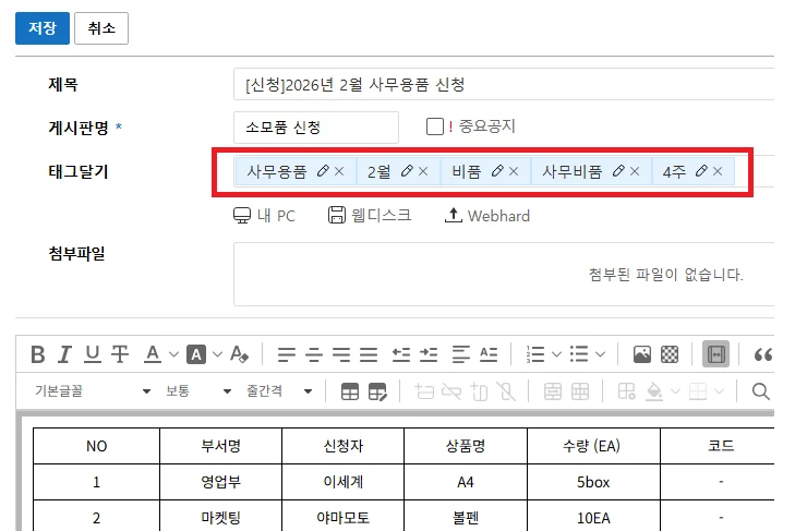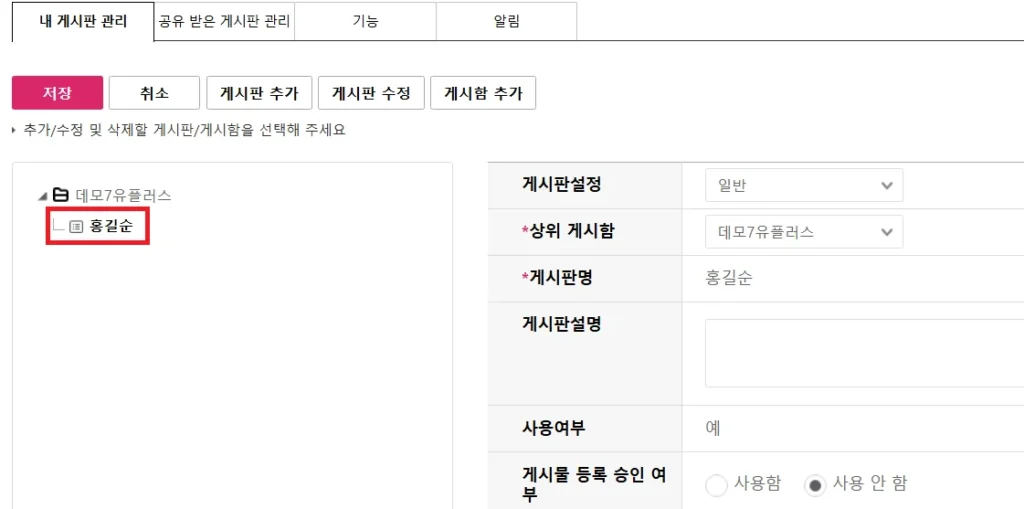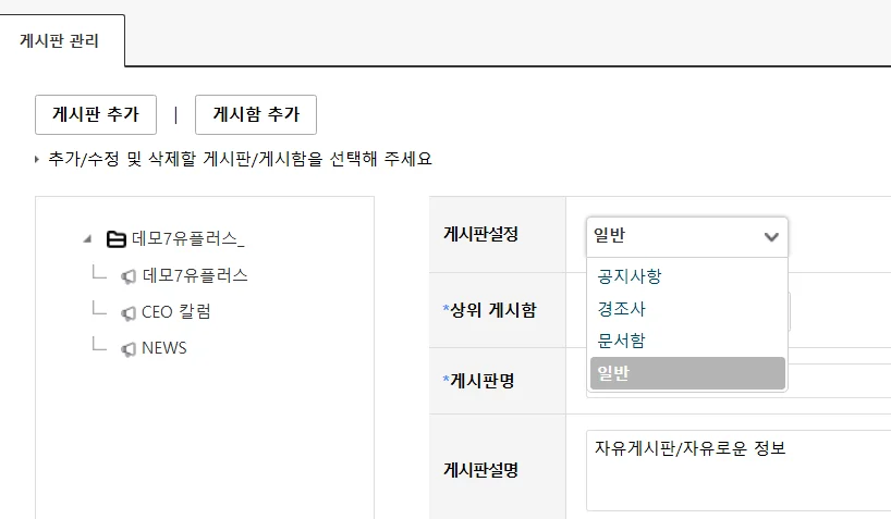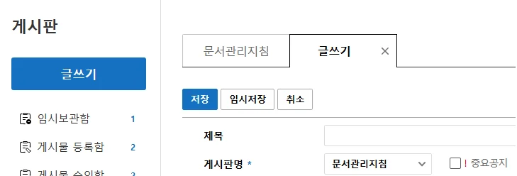 업무 성격에 따라 게시판을 나눠 쓸 수 있어