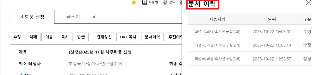 - 수정 이력이 자동으로 기록되어
