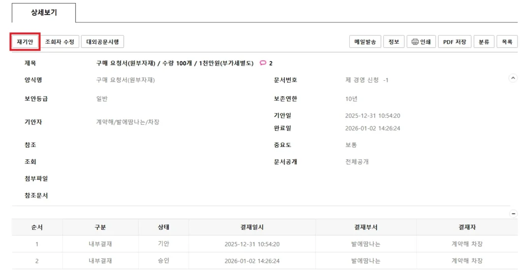 - 내가 올린 기안이 어디까지 갔는지
