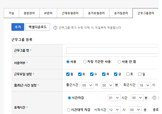 근무그룹관리에서는