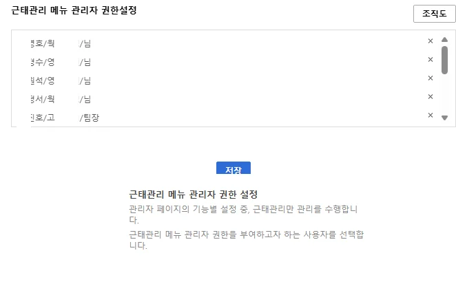 근무그룹관리 아래쪽에는