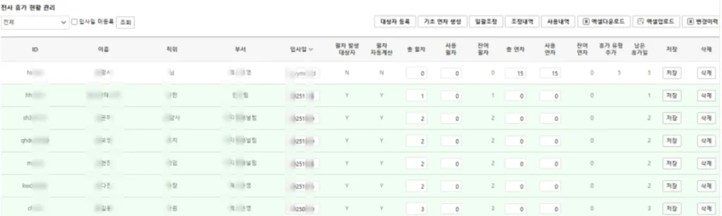 - 휴가·연차 관리