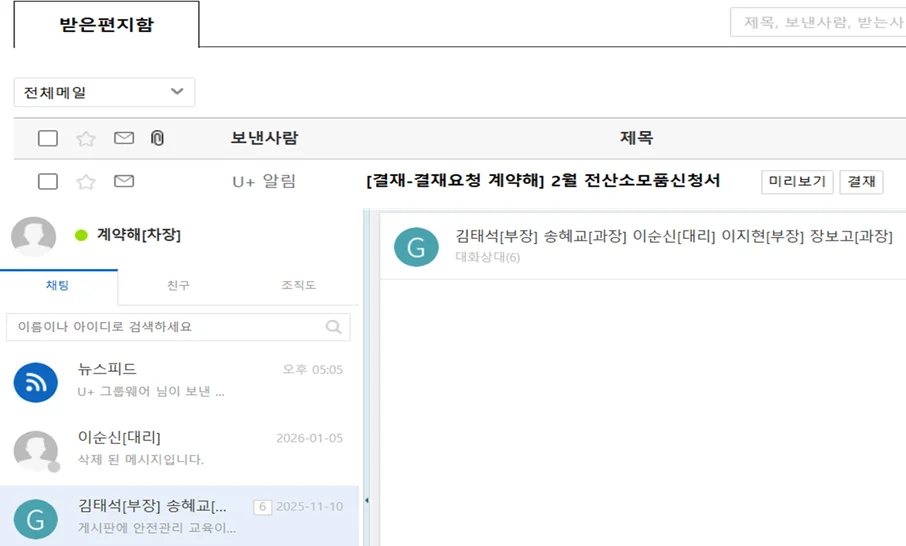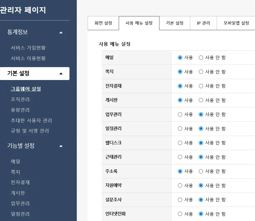 근무 관리나 결재를 더해도 됩니다.