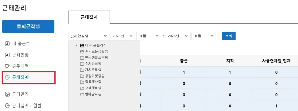 근무 기록을 한 곳에서 보는 흐름이 필요합니다.
