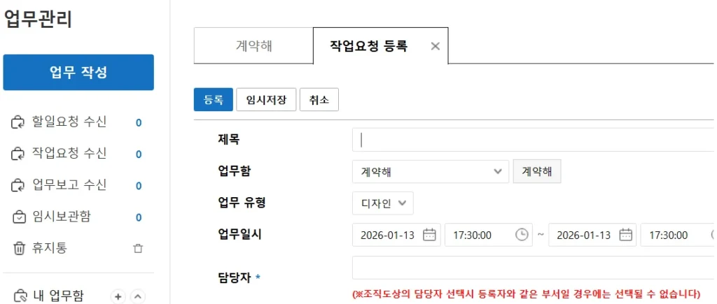 업무 알림, 요청, 기록이