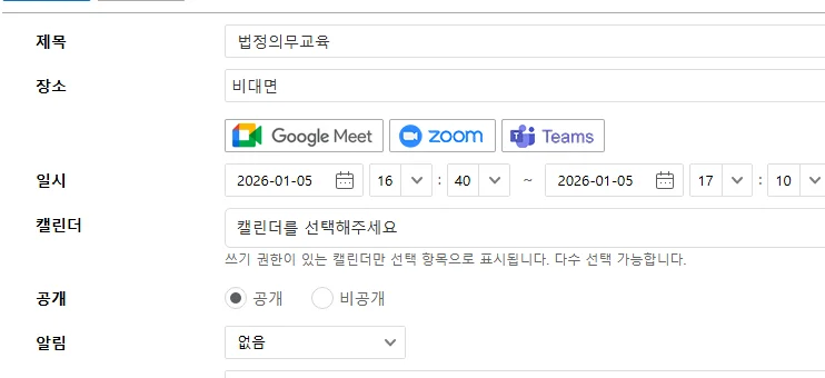 “캘린더에 있어요”라고 말할 수 있습니다.