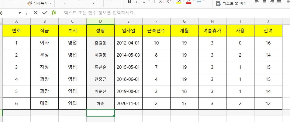 대부분 회사가 엑셀로 연차를 관리하기 때문이에요.