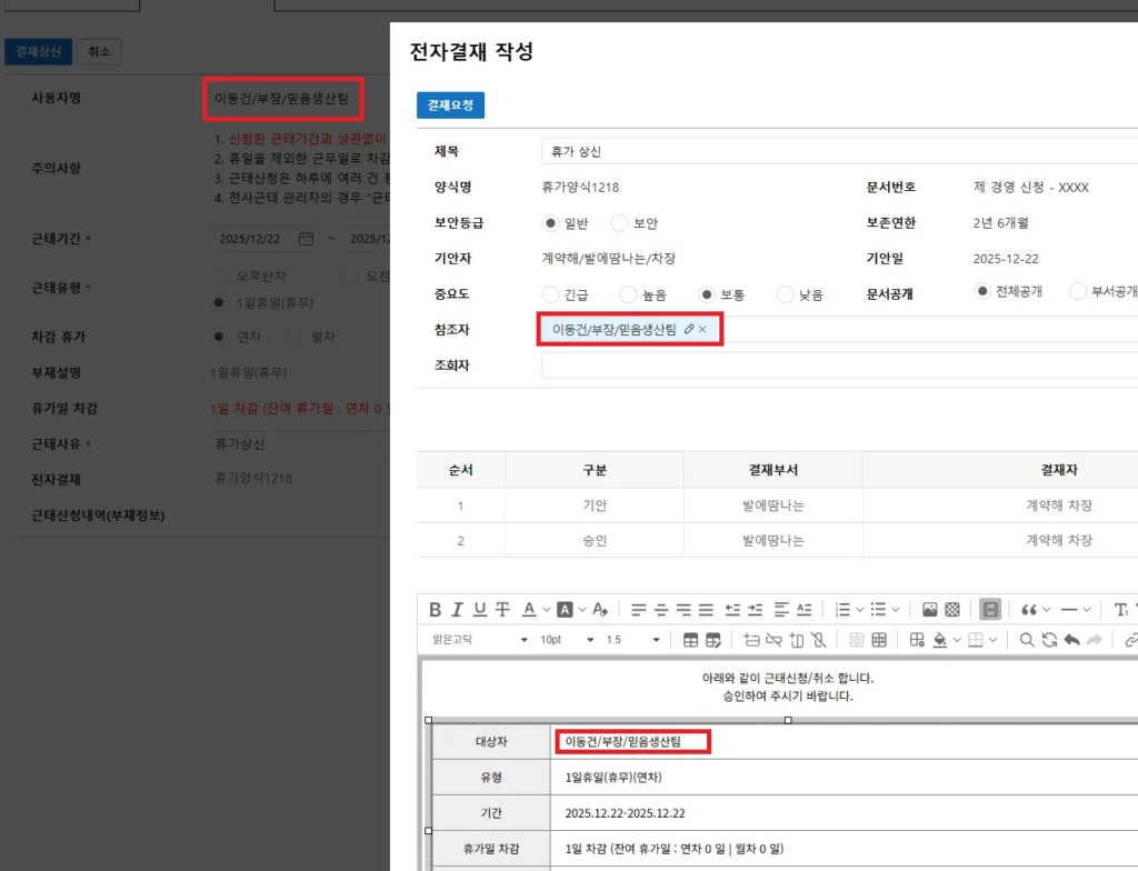 전자결재로 모든 요청과 승인이 남습니다.