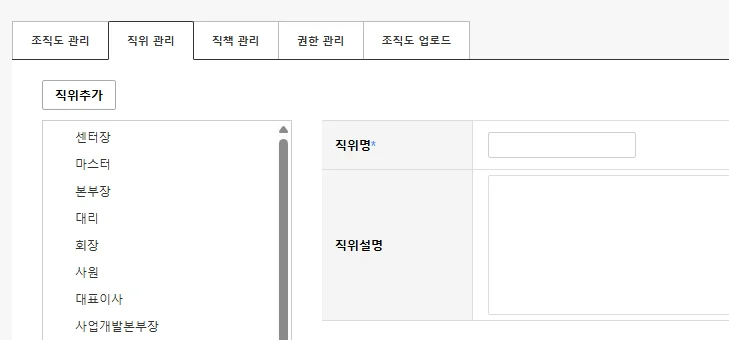 - 직위(Position): 위계적 위치/호칭 (예: 사원, 대리, 과장, 이사)