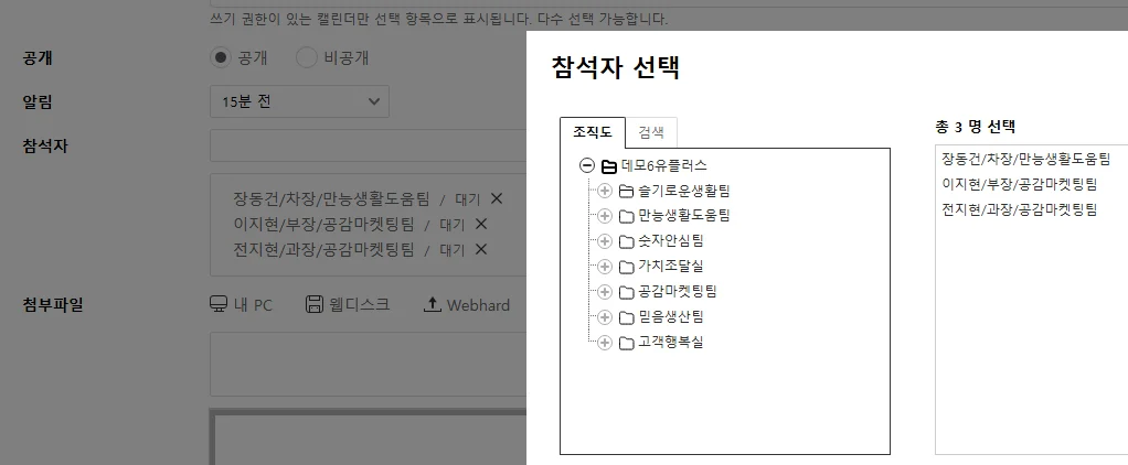 - 저장하면 알림이 발송되어서. 참석자는 회의 시간을 잊지 않아서 좋아요. (쵝오!)