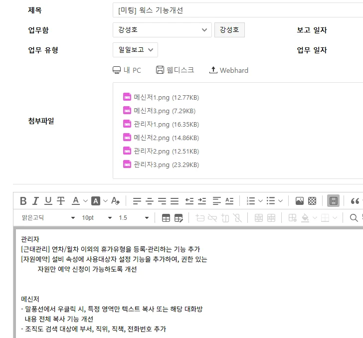 - 메신저에 업무일지 링크만 공유하면 팀 보고가 끝나겠지요.