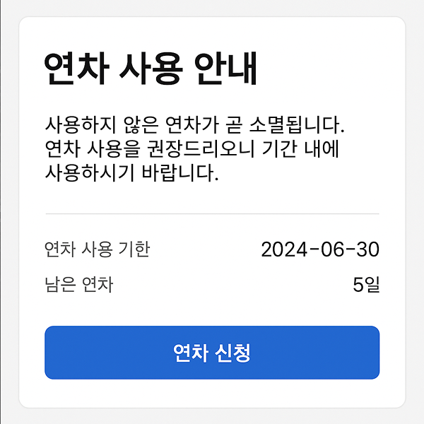 - 알림 기능: 연차가 소멸되기 전에 자동으로 알림