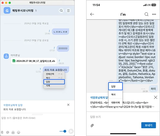 1. PC메신저 및 모바일 메신저 답장 기능