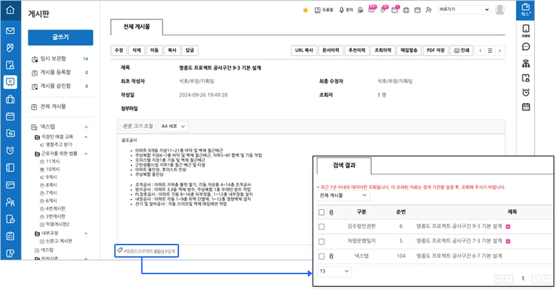 – “태그”를 클릭하여, 동일 “태그”가 등록된 게시물을 일괄 조회
