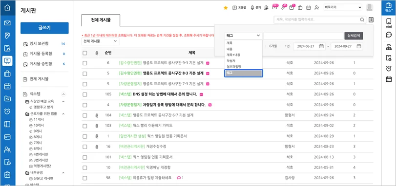 – 상세검색에서 대상에 “태그”를 추가