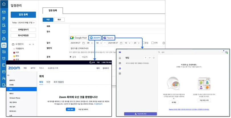 4. 일정등록 시, ZOOM 및 Teams 새창 호출 버튼 추가