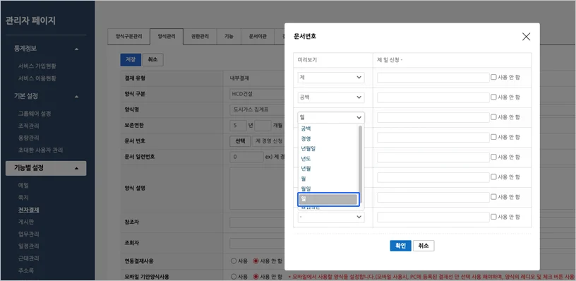 5. 전자결재 양식 문서번호에 “일” 선택기준 추가