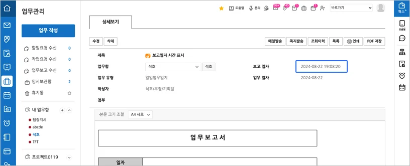6. 업무일지와 업무보고 보고일자에 시간 추가