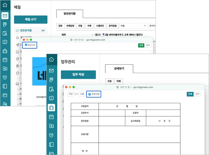 1. 메일과 업무관리 내용 인쇄 시, 본문인쇄 옵션 추가