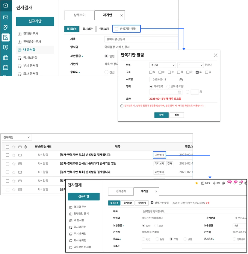 3. 전자결재 반복기안 알림 옵션