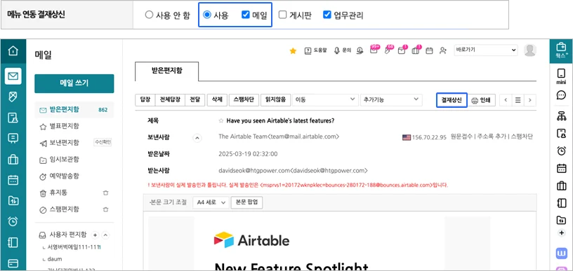 1. 결재상신 기능 연동 사용 여부 설정 기능