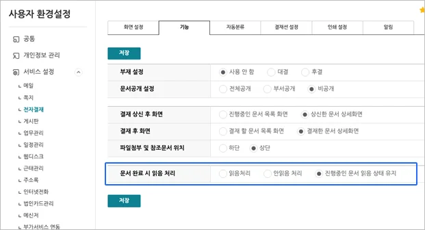 4. 완료된 전자결재 “내 문서함”의 읽음 처리 설정