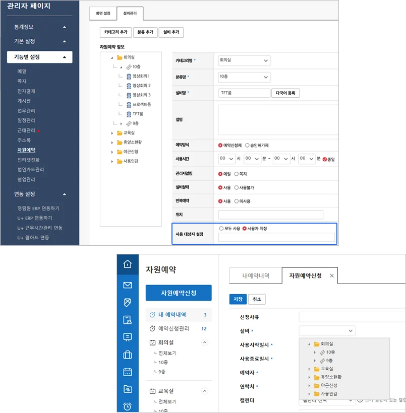 2. 자원예약 설비 사용 대상자 설정