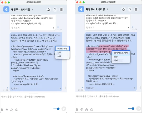 3. PC메신저 말풍선의 우클릭 복사 기능 개선