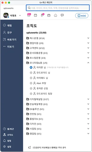 4. PC메신저 조직도에서 부서, 직위, 직책, 전화번호 대상 추가
