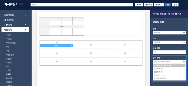 6. 폼에디터 양식편집기에서 “완료일” 연동 항목 날짜 형식 추가